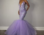This stunning lavender prom dress features a dazzling stretch sequin fabric that sparkles under the light, creating a glamorous, eye-catching effect. Designed with plenty of structure for comfort and shape retention, it hugs your curves while ensuring you feel at ease all night long. Perfect for any prom or formal occasion, this dress combines elegant purple tones with a form-fitting silhouette that holds its shape beautifully. Whether you're looking for a chic, comfortable option in Chicago for prom season or a show-stopping look for a special event, this dress is your ultimate statement piece.