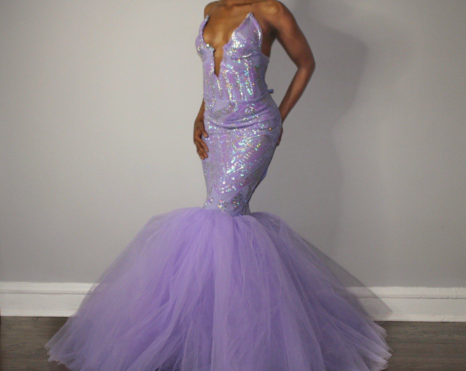 “Amahle” Purple Sequin V-Cut Mermaid Dress-Prom Sample