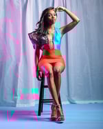 This dress is made out of high quality stretch, beaded and sequin material. It is a 1of1 item and cannot be custom ordered.