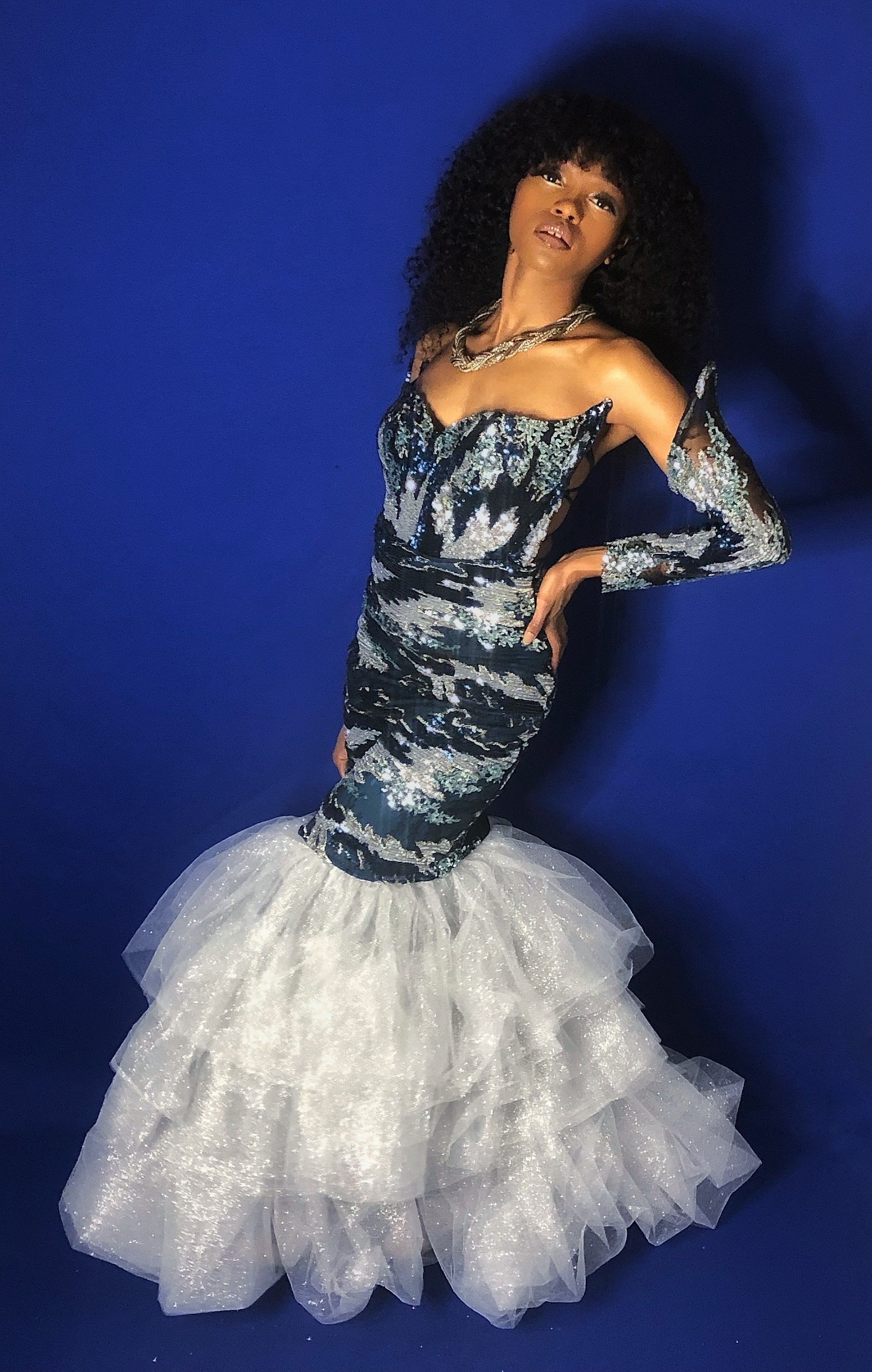 “Ice Queen” Silver and Blue Mermaid Dress with Detachable Train