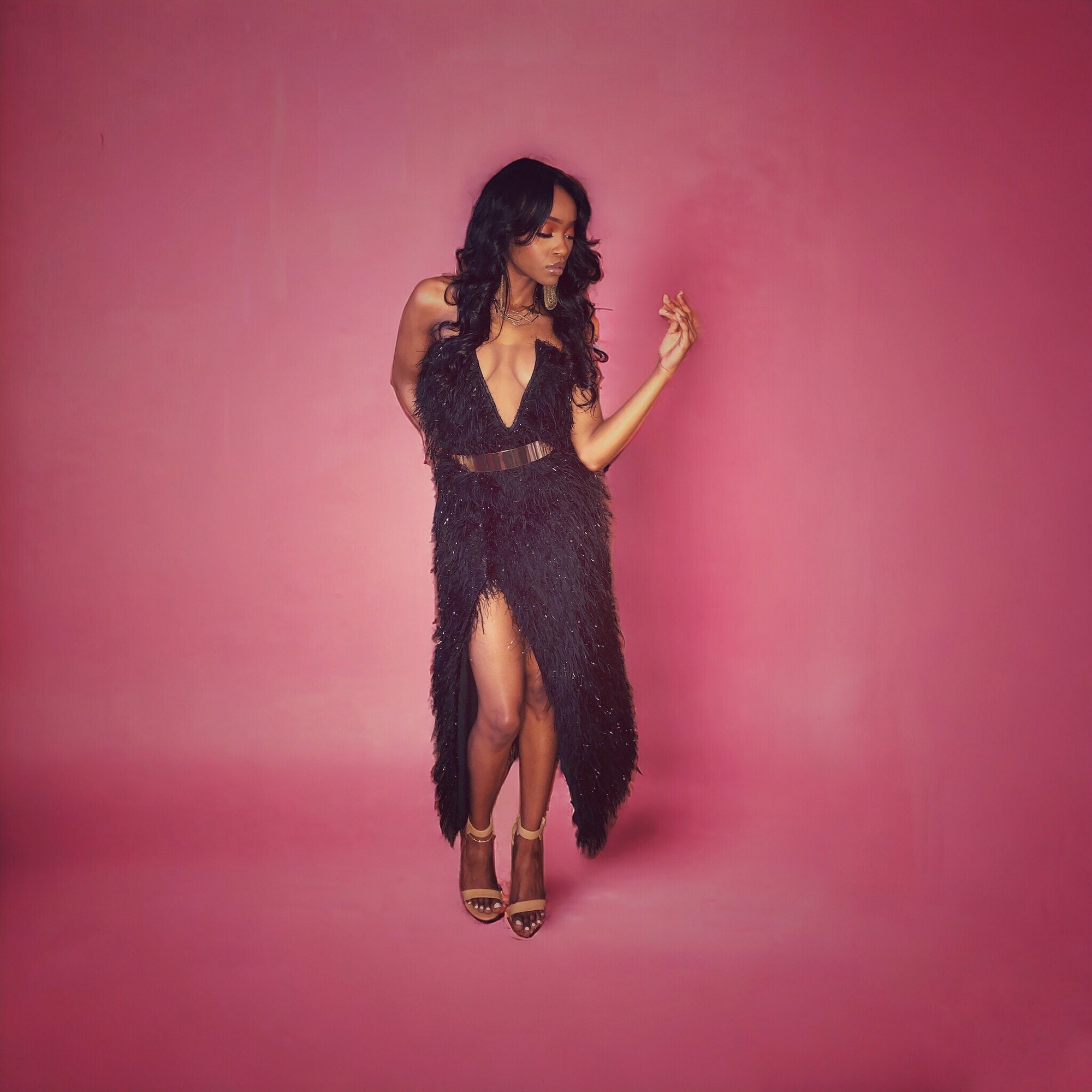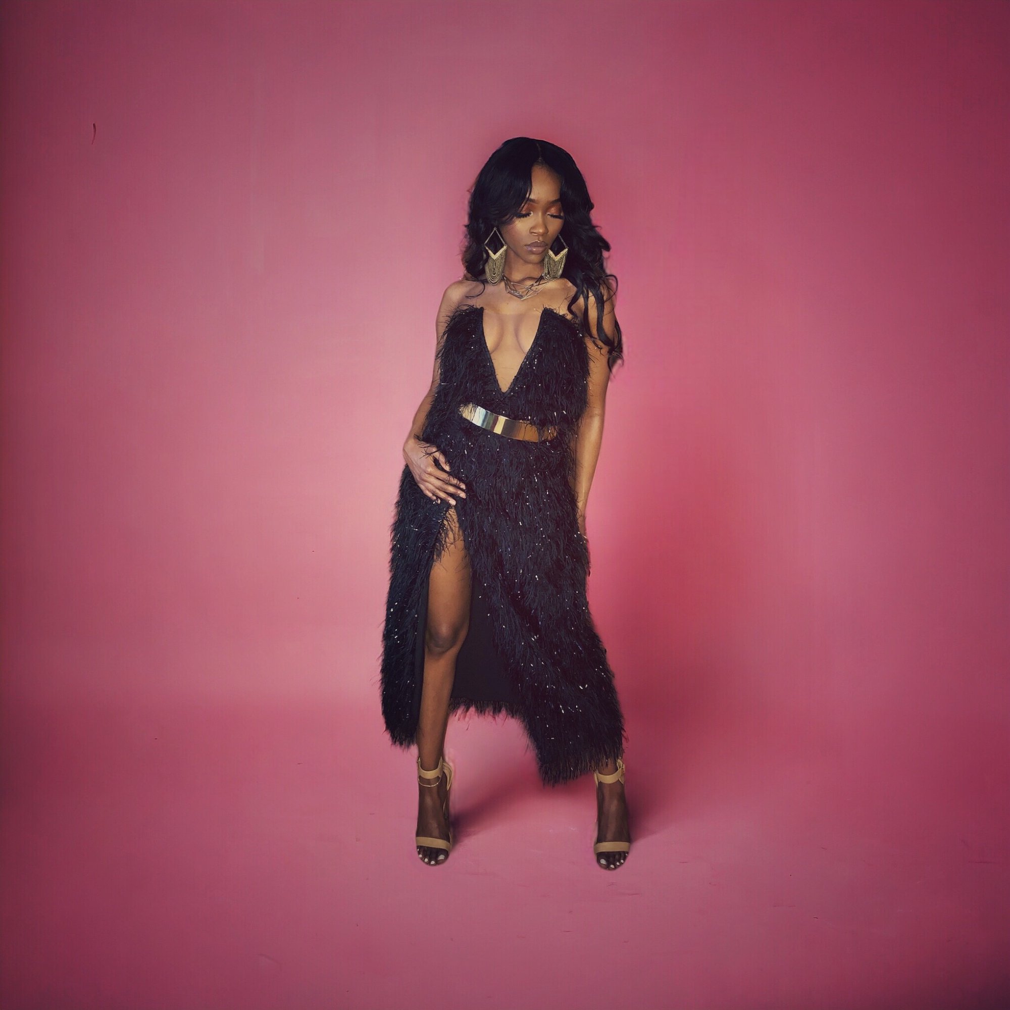 “Leila” Furry Black Gown- 2 Piece